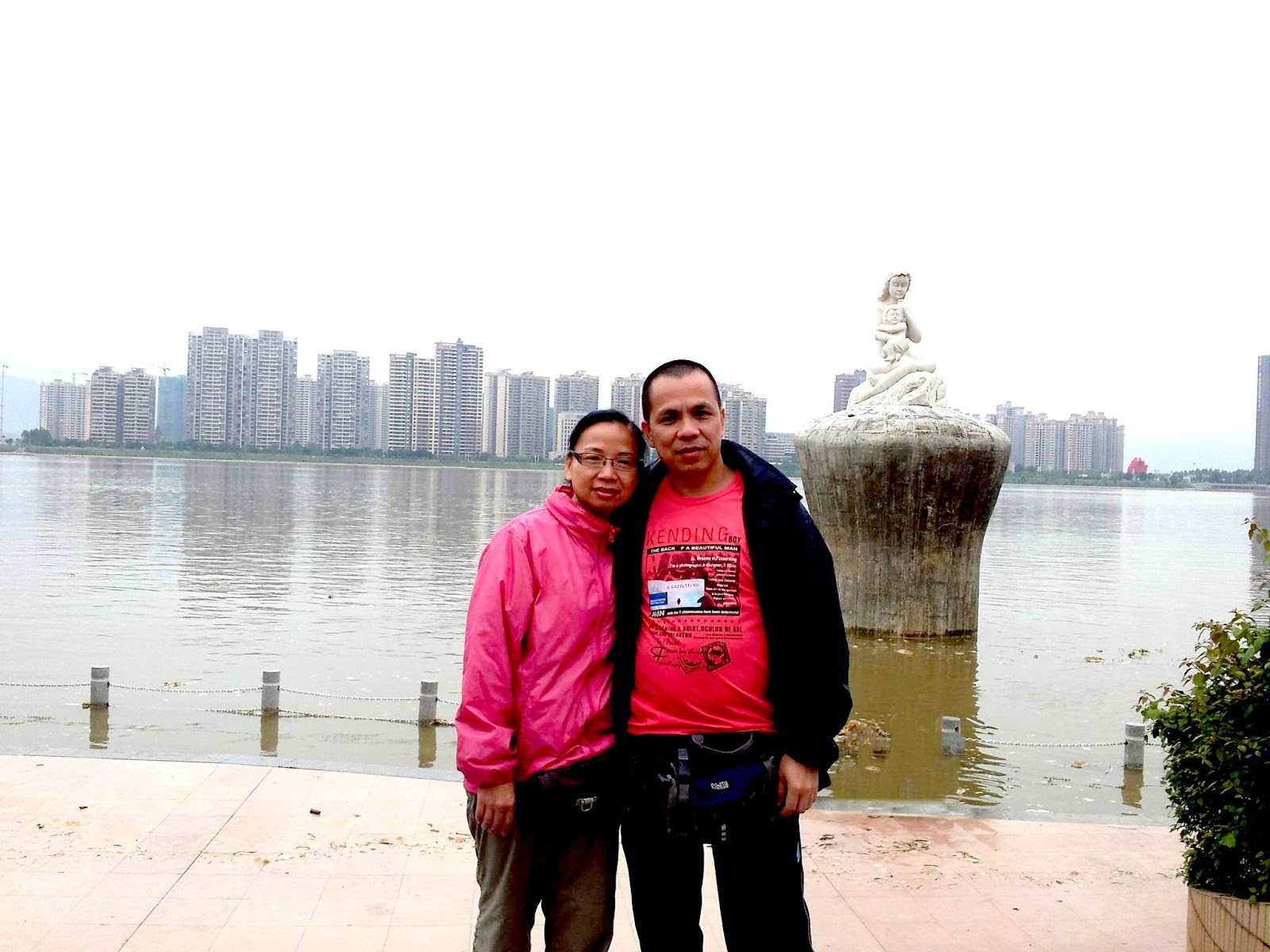 早餐在酒店享用,又是失望! 餐後到「百步梯風景區」遊覽,山峰高約400 多米,900 多級石階。根據導遊指引,到一半階級,在[遠眺]二字觀景最好。是嗎? 千萬不要相信! 我和老公最早走完石階,到達觀景台,原來還有山路,眼見其他團友還在山下,見還有時間,行山的我們當然不放過,再往上走,景色才好!午餐是重頭戲---MAY姐介紹的[石潭豉油雞宴],還不錯! 飯後到清遠小外灘和御金街消磨時間,最後就回香港啦!